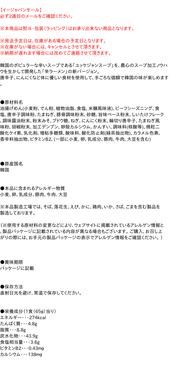 農心ジャパン 旨ピリ辛ラーメン65g【イージャパンモール】
